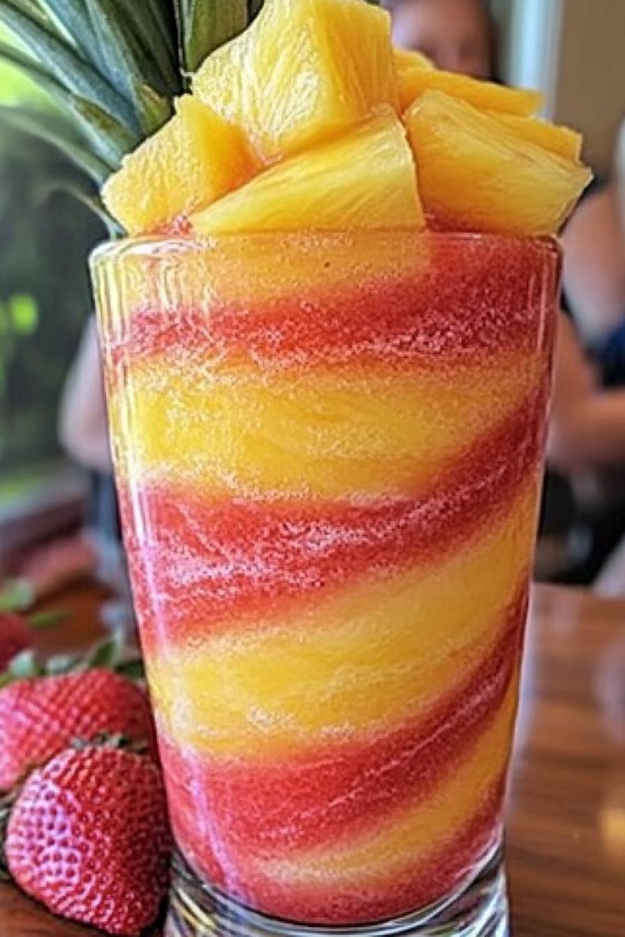 Serve: 8. Serve immediately with a straw and enjoy your refreshing Pineapple Strawberry Swirled Slushie!