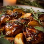 This comforting dish combines sweet and savory flavors with tender chicken thighs coated in a rich apple cider glaze, perfect for family dinners.
