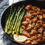 Enjoy your flavorful and healthy **Chicken Bites and Lemon Asparagus** dish!