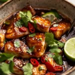 4. Serve – Serve over rice, garnished with coriander, sliced red chilli, and lime wedges. It pairs perfectly with steamed Asian greens!