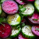 Crisp Cucumber and Beetroot Salad is a refreshing and colorful dish that brings together the crunchiness of cucumbers and the earthy flavor of beets. It’s easy to prepare and perfect for a light lunch or as a side dish at dinner. This salad not only looks vibrant but is also packed with nutrients, making it a healthful choice for everyone.
