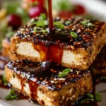 Delicious Sesame Crusted Tofu Steaks with Teriyaki Sauce