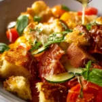 Panzanella is a delightful Italian salad that showcases simple ingredients, bringing out the flavors of ripe tomatoes and crusty bread. Traditionally enjoyed in the summer when tomatoes are at their best, this salad is not only fresh but also a brilliant way to use up stale bread. The combination of juicy tomatoes, crunchy cucumbers, fragrant basil, and crispy bread makes for a dish that’s bright, satisfying, and packed with flavor.