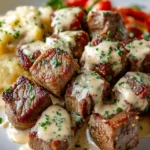 Enjoy these Garlic Butter Steak Bites with a Rich Parmesan Cream Sauce, and savor every bite!