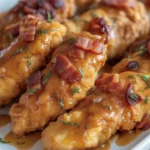 Throw everything in the oven till the bacon is crisp and chicken isn’t pink. About 25 minutes in a hot(ish) oven usually—though if your oven has a “personality” like mine, it sometimes takes a tad longer. Let it rest (ugh, the waiting), then serve. That’s it! No tough steps. You’re basically just wrapping, pouring, and waiting for yumminess.