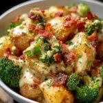A delicious and easy one-pot meal featuring chicken, broccoli, potatoes, and crispy bacon in a creamy ranch Alfredo sauce, perfect for busy weeknights.