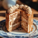 Peanut Butter Cake with Honey Frosting served on a elegant plate