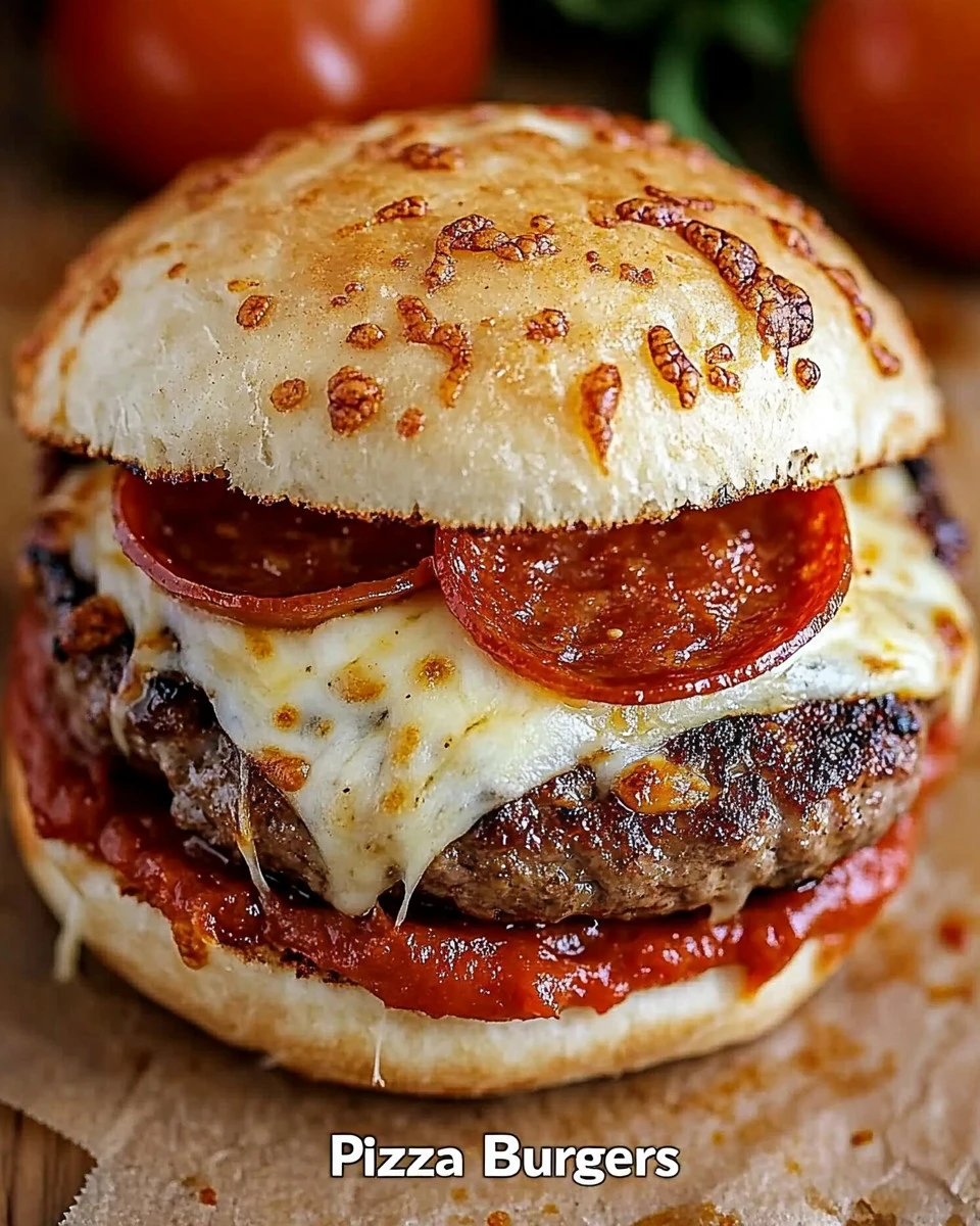 Pizza burgers are a fun twist on two beloved favorites: the burger and pizza! Imagine the juicy flavor of a grilled hamburger patty topped with all your favorite pizza ingredients. This recipe combines the savory goodness of ground beef and pepperoni with the classic taste of pizza sauce and gooey mozzarella cheese. It’s easy to make and sure to please both burger lovers and pizza fans alike.