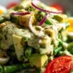 Refreshing green bean avocado salad with creamy dressing and vibrant colors