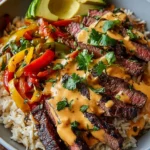 Steak with Queso and Rice is a delightful dish that combines juicy, flavorful steak with a creamy queso cheese sauce and fluffy rice. This meal is not only filling but also packed with flavor, making it a favorite for family dinners or gatherings with friends. The combination of spices enhances the steak’s taste, while the queso adds a rich creaminess that makes every bite satisfying.