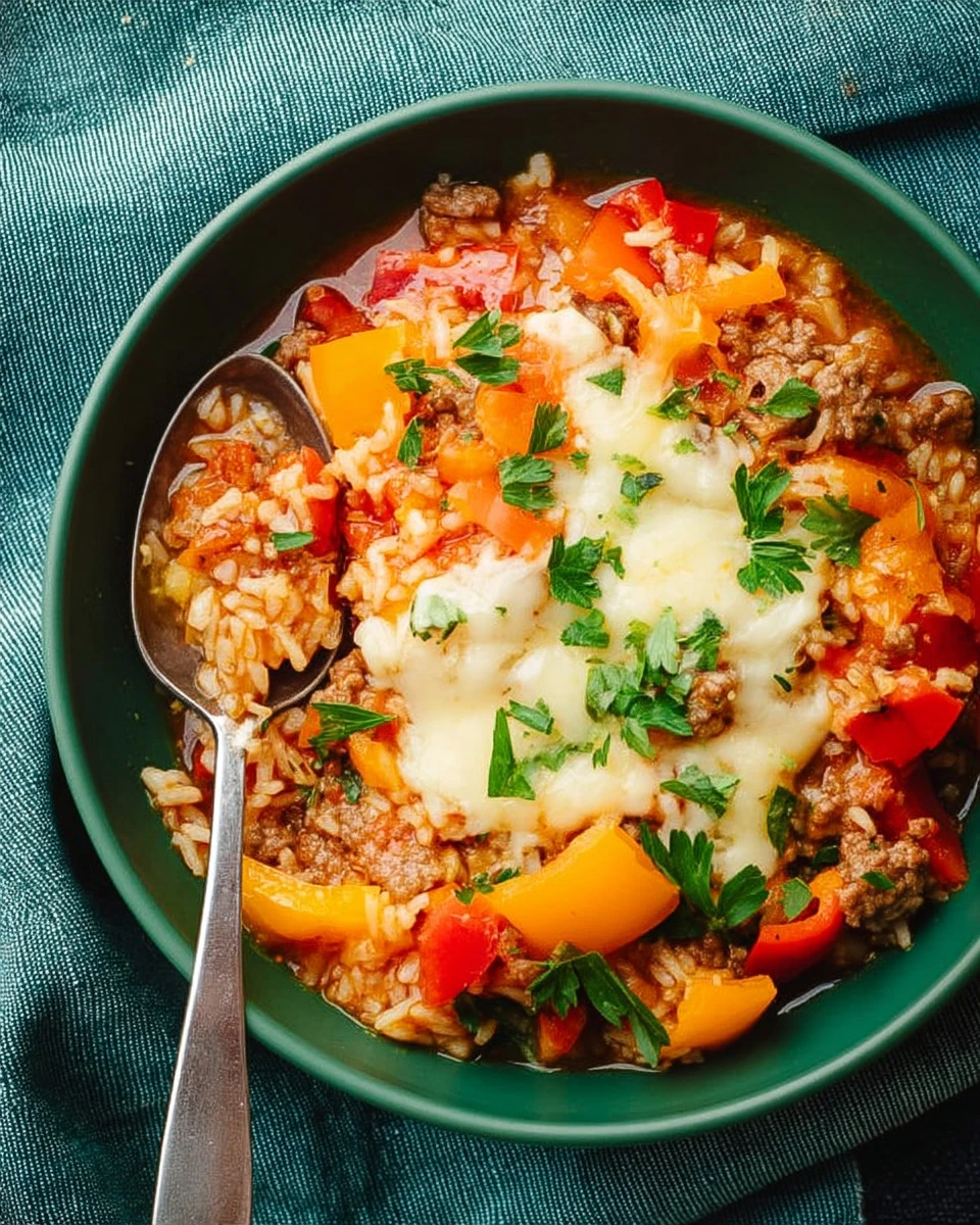 You can serve Stuffed Pepper Soup hot, topped with a sprinkle of cheese and a bit of fresh parsley. It pairs well with crusty bread or a simple salad for a full meal. If you want a little extra flavor, consider adding a dollop of sour cream on top!