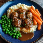 5. Serve & Enjoy: Plate the mashed potatoes and top with meatballs and gravy. Add veggies on the side. You can drizzle extra gravy over the mashed potatoes for that classic touch.