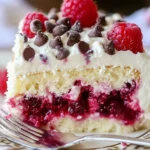 A moist and delicious poke cake that combines rich white chocolate with tangy raspberries, perfect for any occasion.